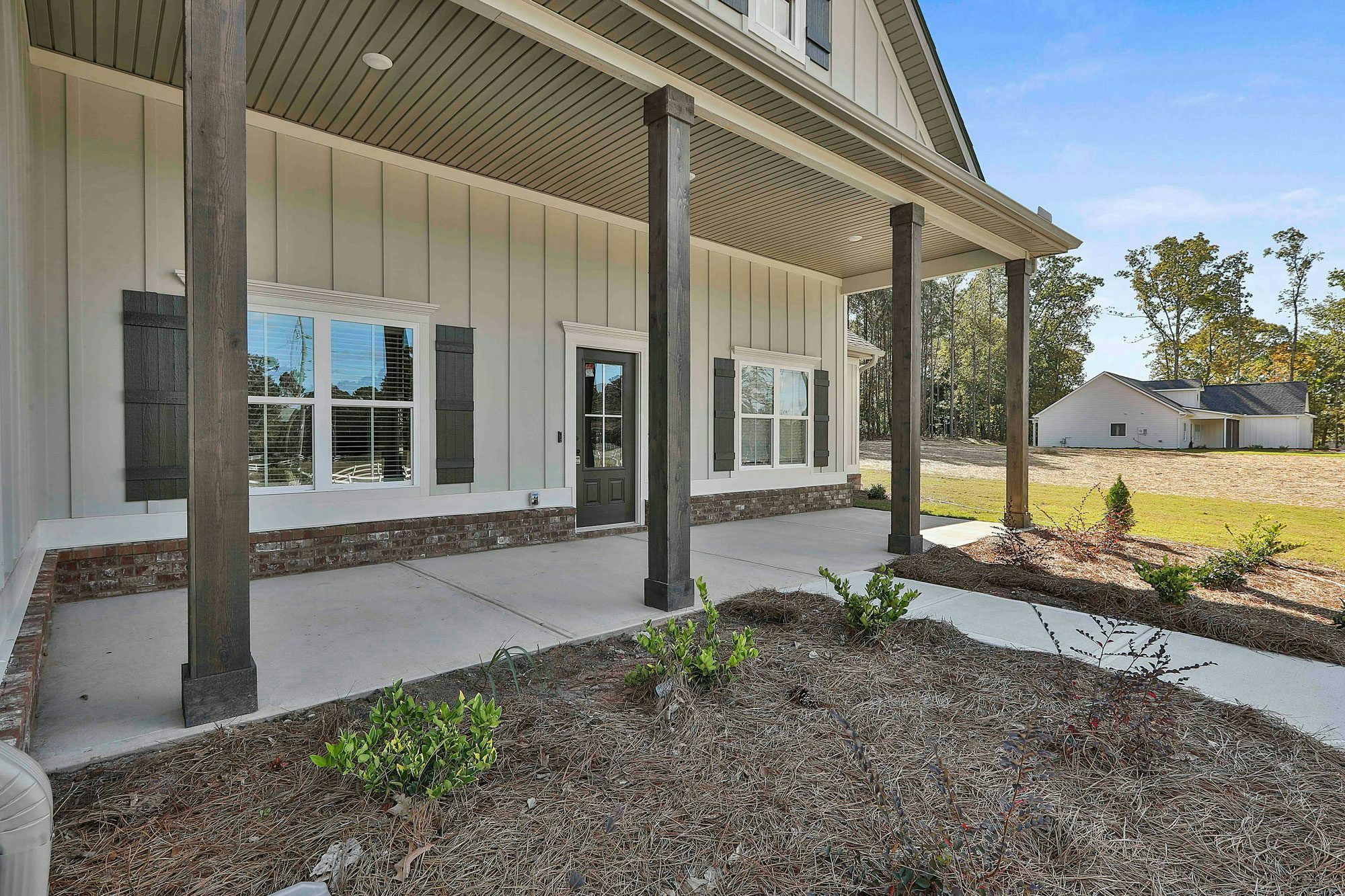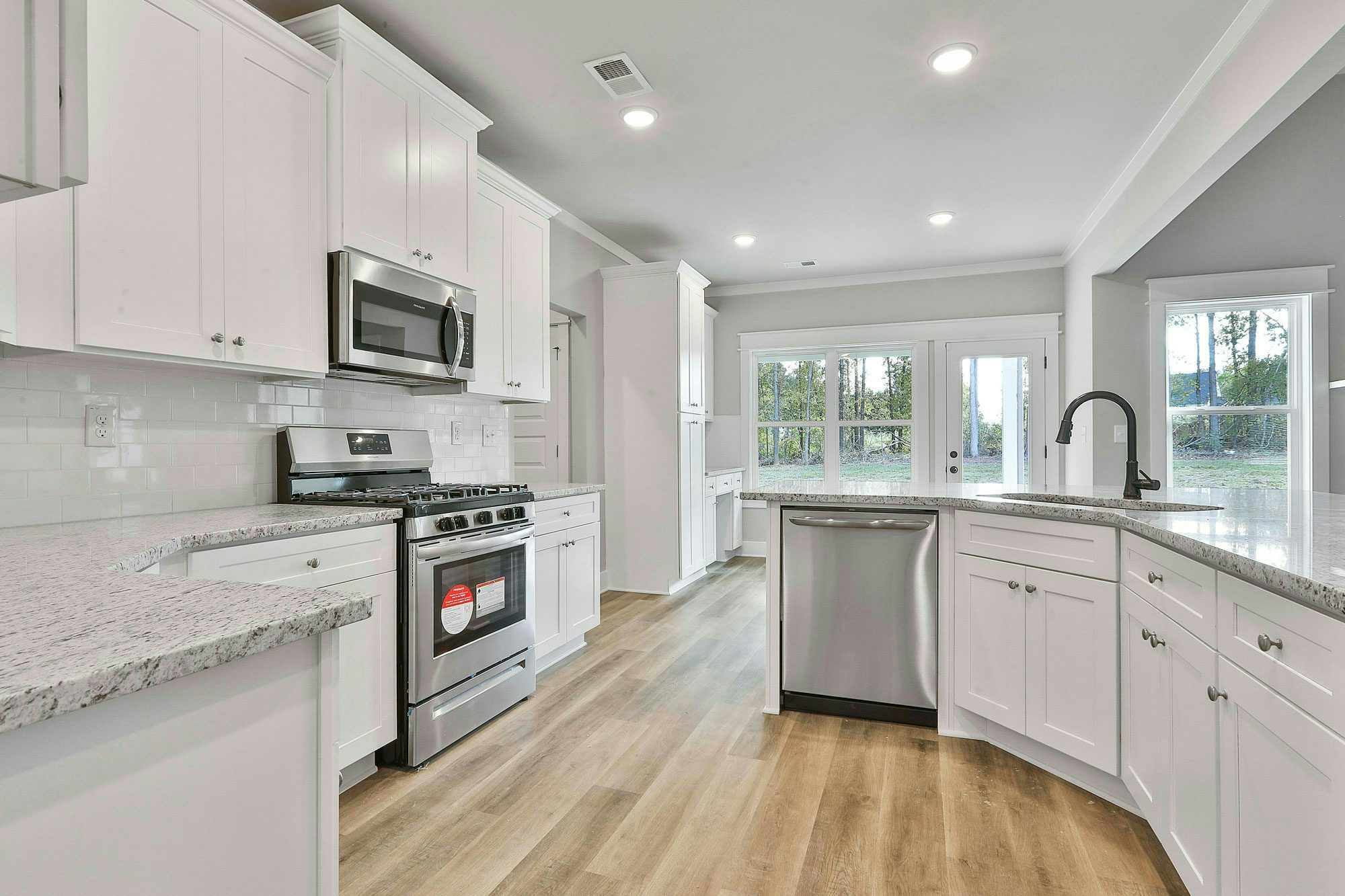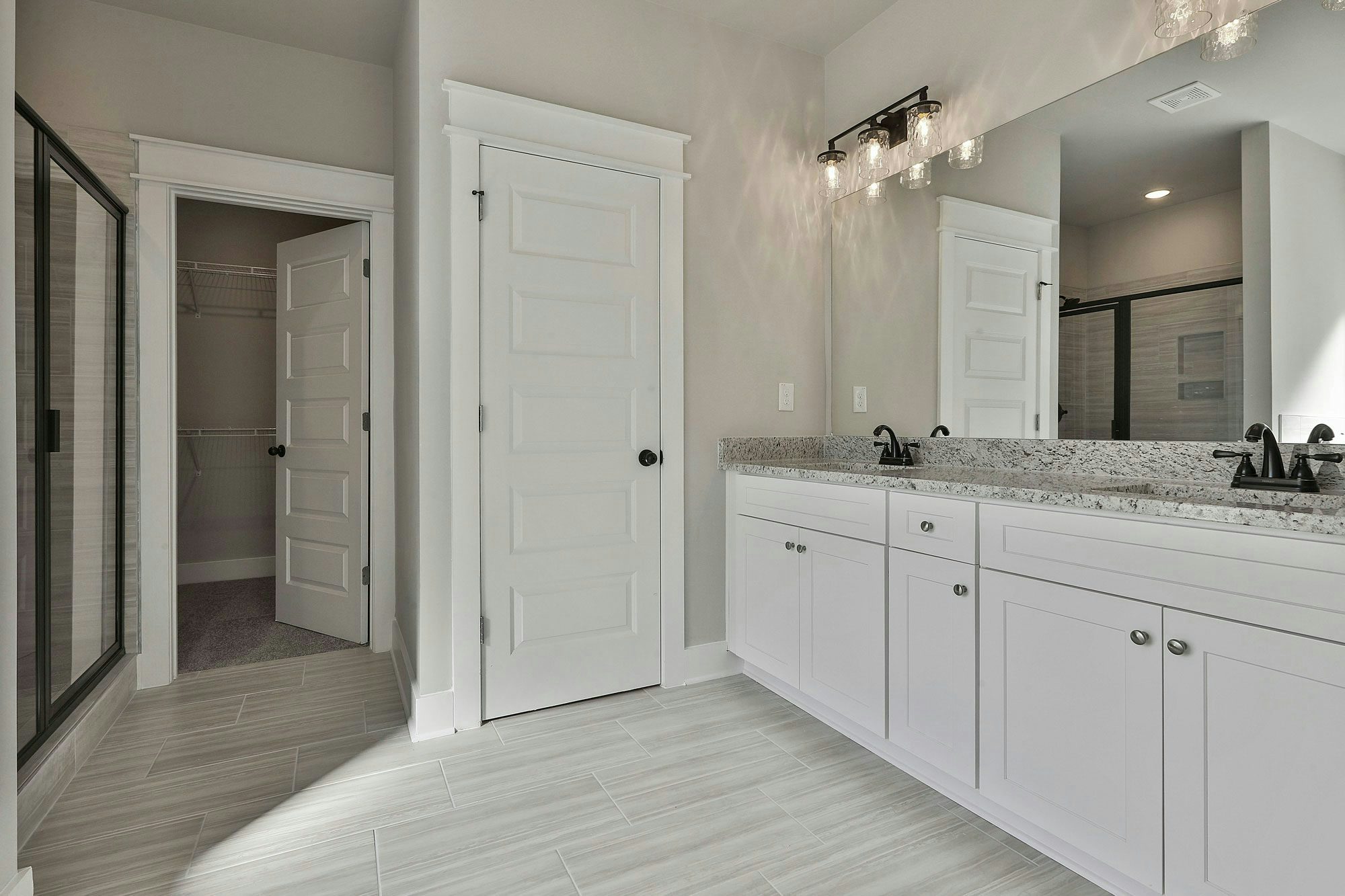 Farmhouse style exteriors, Ranch floor plans, Fiber cement siding, Architectural shingles (30 year warranty), Professionally landscaped yards, Large covered back patios (on slabs), 9’ ceilings, Trey or vaulted ceilings (per plan), Craftsman trim package, Ceiling fans in Owner’s Retreat and great room, Fans pre-wired in secondary bedrooms, Solid surface flooring through living areas, kitchen, laundry, and half bathrooms, Tile in master bathroom, Granite countertops throughout, Stainless steel appliances, Soft close cabinets throughout, Spacious Owner’s retreat, Garden tub & separate tile shower in Owner’s retreat (plan specific), Oversized walk-in closet in Owner’s retreat, Wireless security system, HVAC dual system with sealed ducts for energy efficiency, Video doorbell, Programable Digital Thermostat , Pre-closing home orientation, One year Chisel Mill exclusive in-house warranty, 2-10 structural extended warranty by 2-10 Warranty Corporation, Transferable termite bond.