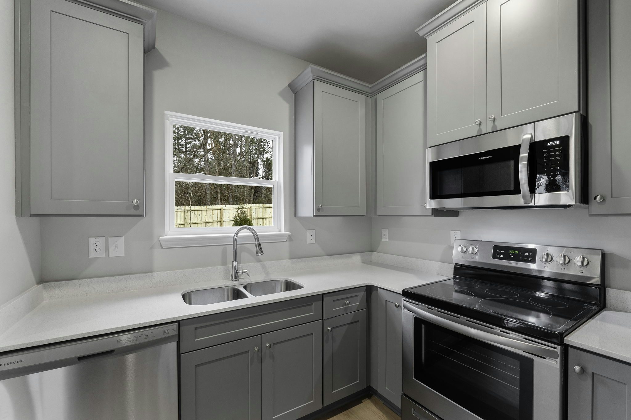 LVP flooring throughout living areas on main level, Carpeted Bedrooms, LVP Master Bathrooms, Granite countertops, Soft Close Cabinetry, Frigidaire SS appliances (dishwasher, microwave, oven/range combo), SS double sink, Walk in closet, Shower & Tub Insert, Ceiling Fans, 6 Ft Privacy Fenced in Yard, Electric Water Heater, Security System, Hardy Plank Siding, HVAC, Gutters, 2-10 Home Warranty, 1 Year Builder warranty, 1 yr termite warranty covered by builder.