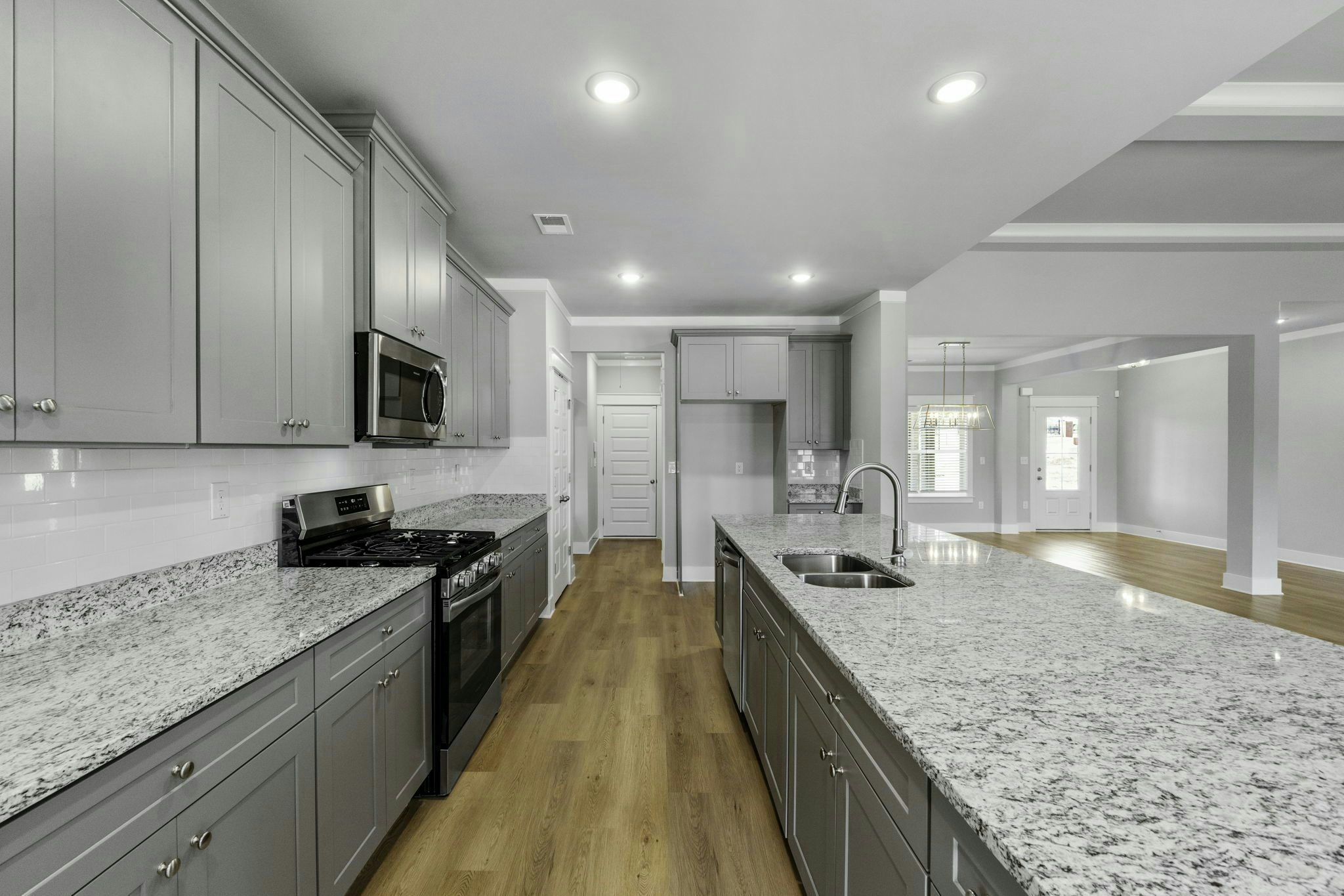 Farmhouse style exteriors, Ranch floor plans, Fiber cement siding, Architectural shingles (30 year warranty), Professionally landscaped yards, Large covered back patios (on slabs), 9’ ceilings, Trey or vaulted ceilings (per plan), Craftsman trim package, Ceiling fans in Owner’s Retreat and great room, Fans pre-wired in secondary bedrooms, Solid surface flooring through living areas, kitchen, laundry, and half bathrooms, Tile in master bathroom, Granite countertops throughout, Stainless steel appliances, Soft close cabinets throughout, Spacious Owner’s retreat, Garden tub & separate tile shower in Owner’s retreat (plan specific), Oversized walk-in closet in Owner’s retreat, Wireless security system, HVAC dual system with sealed ducts for energy efficiency, Video doorbell, Programable Digital Thermostat , Pre-closing home orientation, One year Chisel Mill exclusive in-house warranty, 2-10 structural extended warranty by 2-10 Warranty Corporation, Transferable termite bond
