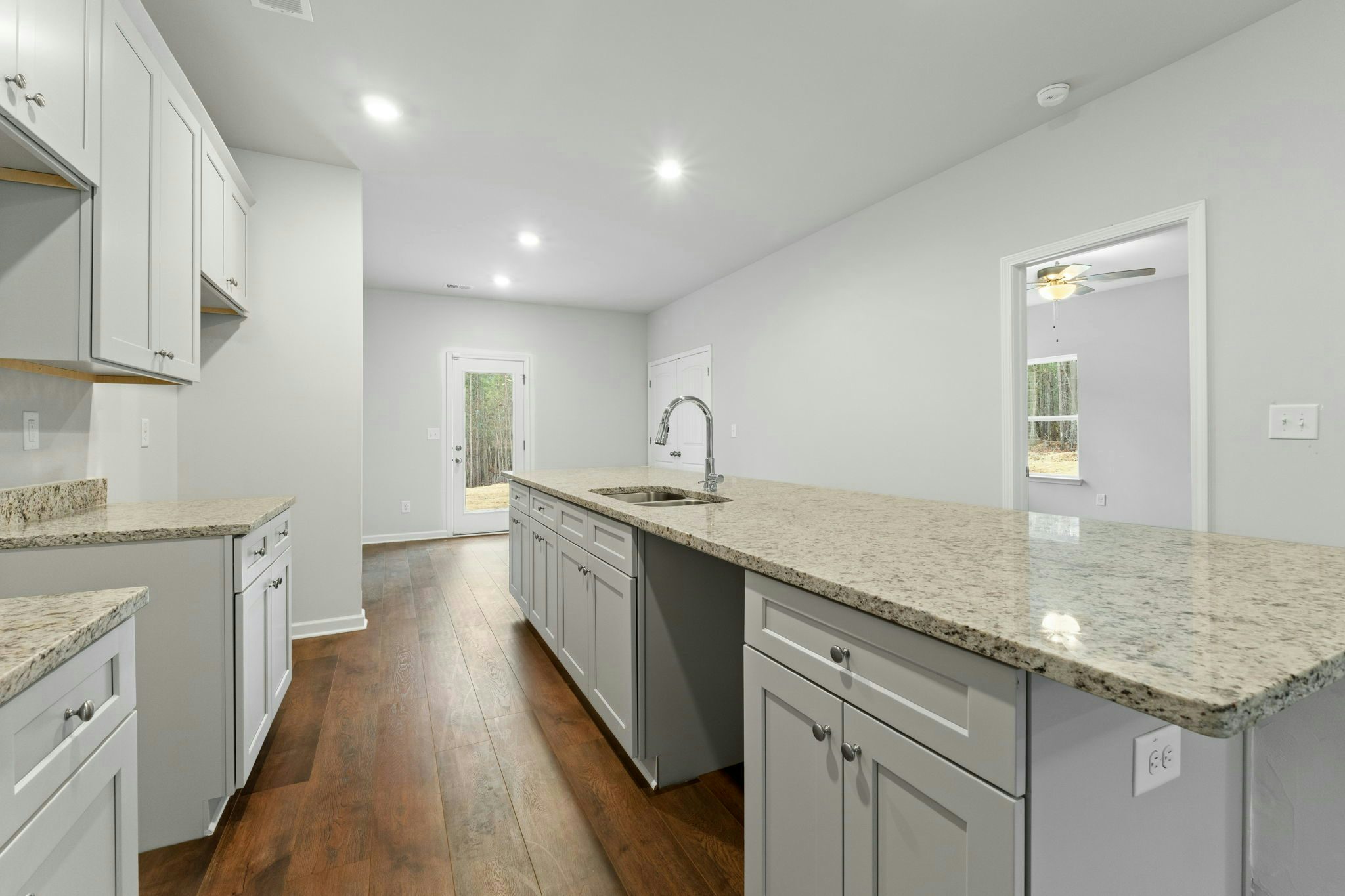 Waterproof Laminate Flooring throughout living areas on main level, Carpeted Bedrooms, Waterproof Laminate Flooring in Master Bathrooms, Granite countertops, Soft Close Cabinetry, Frigidaire SS appliances (dishwasher, microwave, oven/range combo), SS double sink, Walk in closet, Shower & Tub Insert, Ceiling Fans, Electric Water Heater, Security System, Vinyl Siding, HVAC, Gutters, 2-10 Home Warranty, 1 Year Builder warranty, 1 yr termite warranty covered by builder.